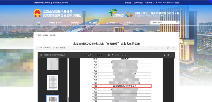 " />近日武漢東湖高新區(qū)開展了2025年度“光谷瞪羚”企業(yè)認(rèn)定工作。武漢松盛光電科技有限公司憑借深厚的技術(shù)實(shí)力及行業(yè)影響力,成功入選。
